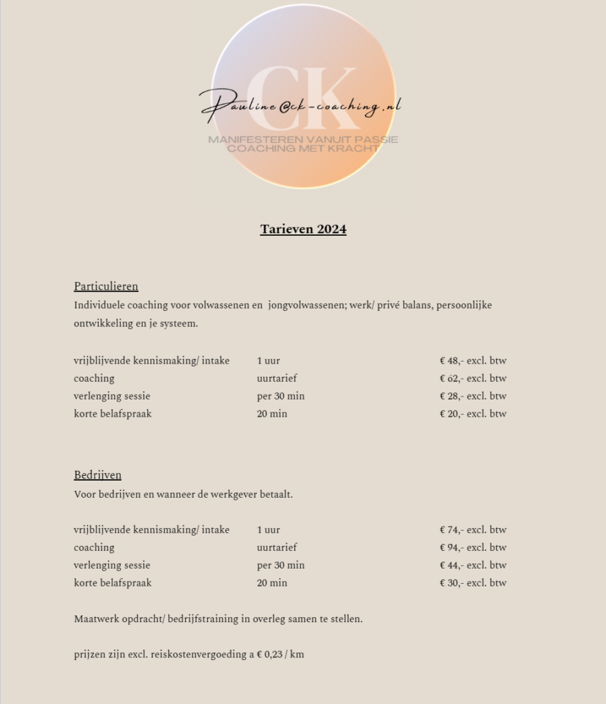 - Aftrekbare studiekosten : Voor particulieren kunnen coachingskosten soms worden afgetrokken als studiekosten bij de belastingaangifte, mits gericht op het verkrijgen van (nieuw) werk of verbeteren van het functioneren.
